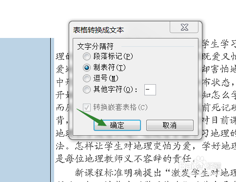 这个时辰呈现一个对话框,默认选择的是制表符,直接点击确定即可。