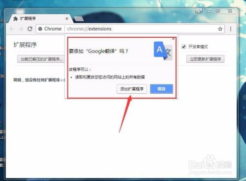 铺开鼠标后就会弹出提醒需不需要添加我们拖入进去的插件,我们点击添加扩展法式。