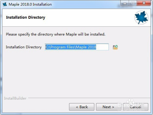 选择安装位置,默认路径为“C:\Program Files\Maple 2018”,点击“文件夹图标”可更改目次,如下图所示: