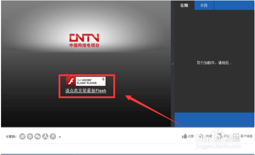 在电脑上打开仗狐浏览器,点击一个要不雅看的视频,进入视频播放界面,若是火狐未安装新的flash插件,视频就无法不雅看,而会呈现【请点击安装最新flash】提醒,然后点击【请点击安装最新flash】,安装flash插件,如图: