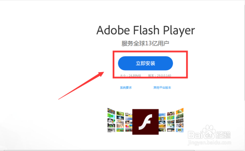 进入flash插件安装页面,点击【当即安装】按钮,如图:
