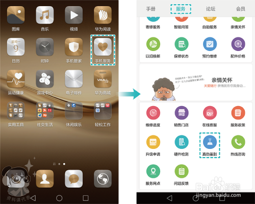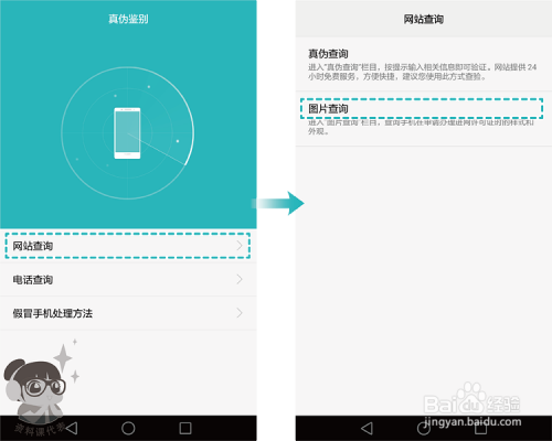 手机办事:在手机本家儿屏幕,点击【手机办事】,在【办事】页签下,点击【真伪辨别】。