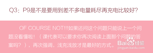 Q3:P9是不是要用赴任不多电量耗尽再充电比力好?
