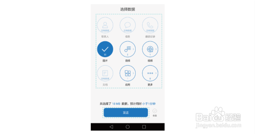 在旧手机上选摘要搬场的数据项,点击发送。就这么简单!
