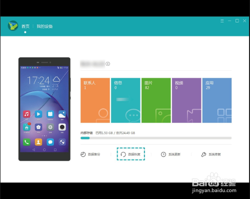 新手机毗连电脑,点击 华--为手机助手 进入本家儿页,经由过程华--为手机助手首页【数据恢复】功能,可以将之前备份的资料导入新手机。