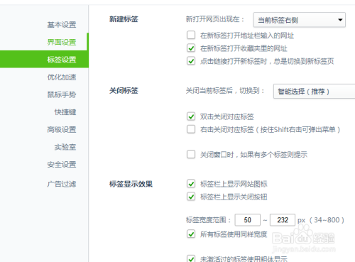 点击一下,会呈现几项内容:封闭所有打开的网签,更多标签设置。你点击更多标签设置。
