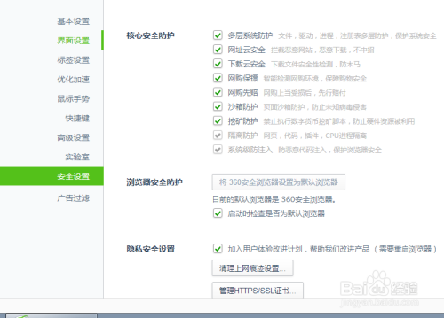 找到这个页面后,标的目的下找,找到平安设置一项,