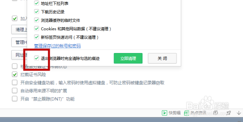 最后一项更得打上勾,如许你封闭收集时,系统会主动给你断根上网陈迹,让你安心上网。