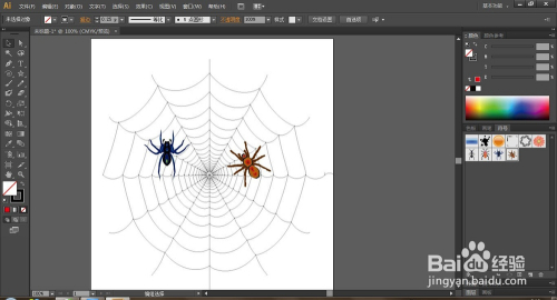 选择窗口-符号,快捷键Ctrl+Shift+F11,打开符号库,选择天然,插手蜘蛛,最终结果如图: