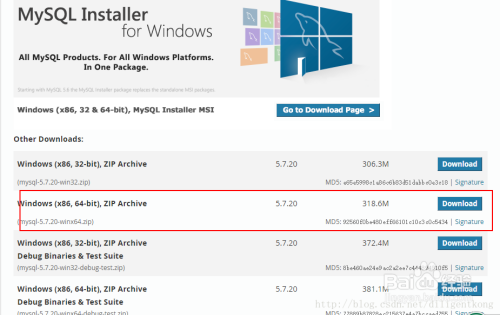 官方下载地址下载软件,按照本身电脑的版本下载适合本身的mysql,如下图所示: