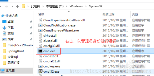 在C盘中,找到Windows文件夹下的System32文件下的cmd.exe ,右击以办理员身份运行,如下图所示: