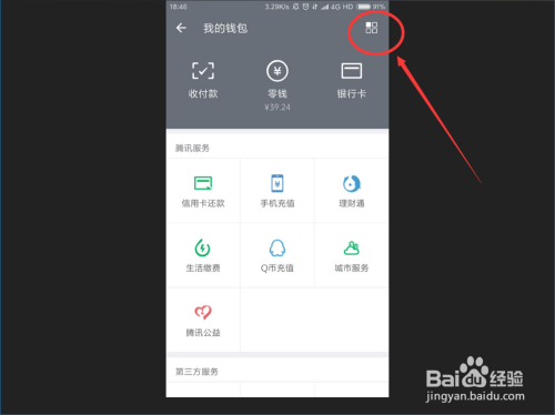 接着,我们在微信我的页面找到微信‘钱包 ’按钮,点击进入微信钱包页面 。