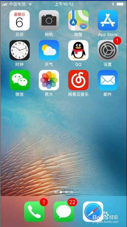 在iphone6手机桌面找到设置,点一下它;