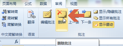 点击下图所示核阅选项卡中批注处的【删除】按钮。