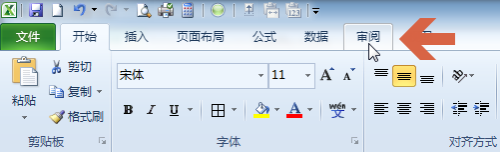 再点击打开excel2010的【核阅】选项卡。