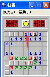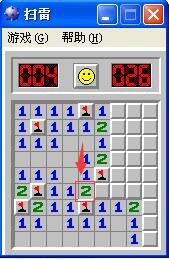 在确信是雷的处所,点一下右键,用右键标识出该出的地雷;