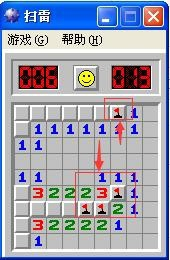 扫雷时,先从数字1起头判定,1申明在它四周有1个地雷,