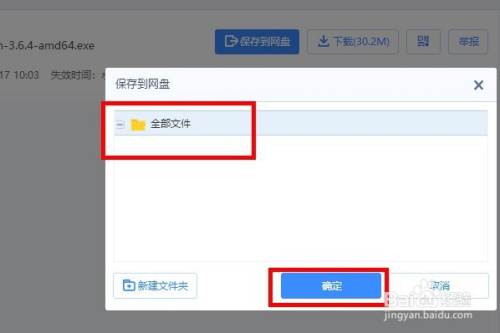 第四步:登录后,我们选择保留在我们本身百度网盘的位置,点击确定。