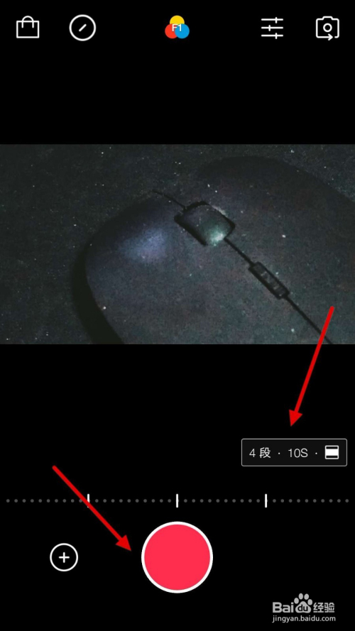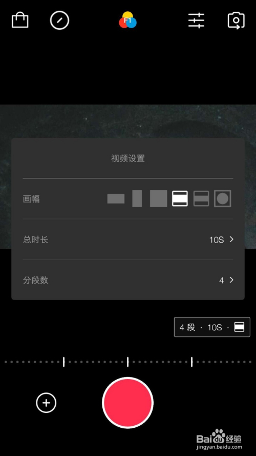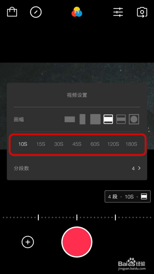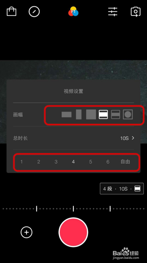 进入后,我们可以看到界面中,默认是4段,10秒,下方红色的是拍摄按钮。