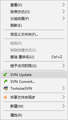 初次下载之后,我们就可以在该目次下,看到SVN Update选项。点击改选项,就可以下载上面的代码了。