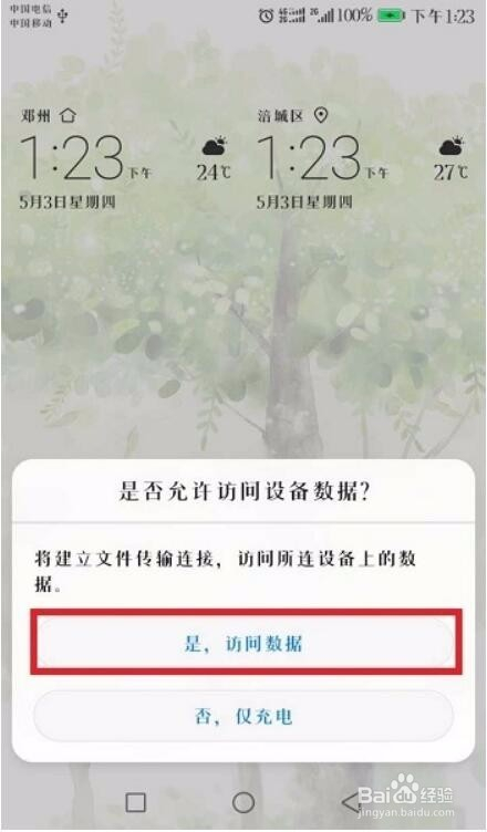 首先用一根数据线毗连电脑和手机,然后选择 是,拜候数据