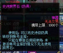 【史诗跨界石】是所有跨界是傍边第一流的。它只能在一些DNF站街活动中获取。它可以将史诗级的装备转移到【账号金库】傍边。