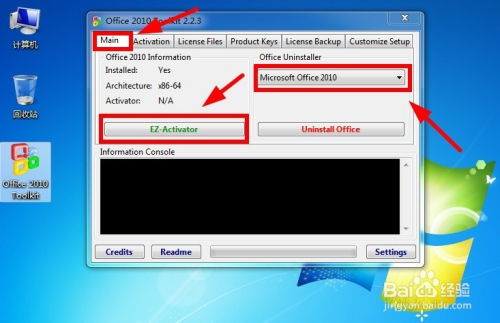 在office2010 Toolkit界面选择“Main”,选择好激活的office 2010版本,点击“EZ-Activator”进行激活(如下图所示)