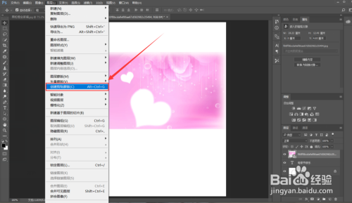 你也可以点击菜单栏中的图层,接着选择剪贴蒙版,快捷键为CTRL+ALT+G,当然你也可以直接按住ALT键,将鼠标放至图片图层与文字图层直接,当呈现一个特别的图标时,单击鼠标左键即可。