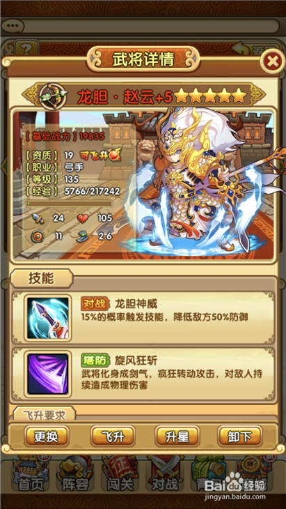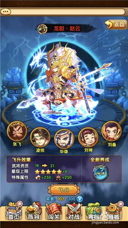 冲破赵云之后,将赵云用紫色熊猫进级到+5满星,如许才可以进行下一步的操作。