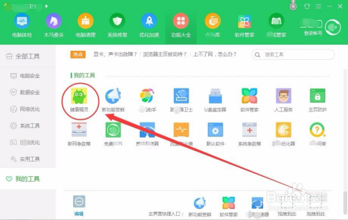 打开功能年夜全窗口后,单击健康精灵按钮。