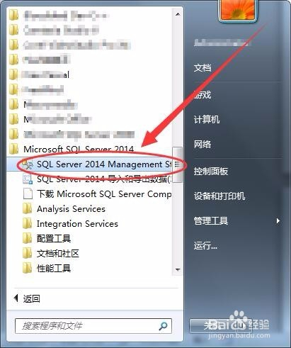 单击起头---->所有法式,选择Microsoft SQL Server 2014中的SQL Server 2014 Management Studio选项。