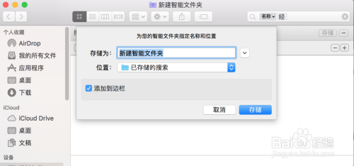 存储时,可给该智能文件夹指命名字、位置和是否在边栏中显示: