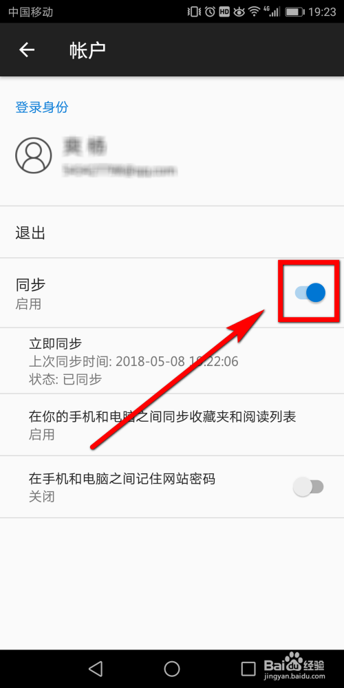 完当作账号登录后,在该页面中点击【同步】后面的滑块,开启同步功能。