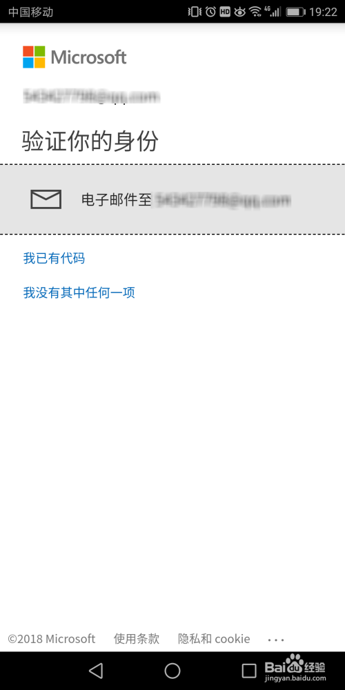 这时微软会标的目的你的邮箱发送一个代码,进入邮箱将代码复制到图示位置,然后点击【验证】按钮。