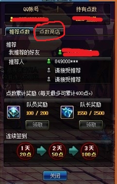4、回归账号介入活动今后,可以经由过程各类活动体例如签到、组队刷图等获得活动点数,点击下图的位置可以或许查看活动点数。