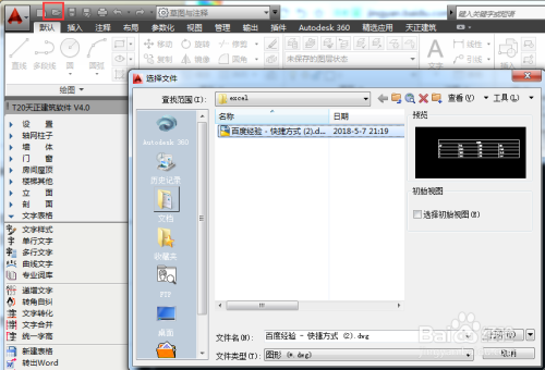 经由过程【T20天正建筑V4.0】软件的快捷体例,启动【AutoCAD 2014 - 简体中文 (Simplified Chinese)】软件,然后【选择文件】对话框载入绘制好的表格文件。