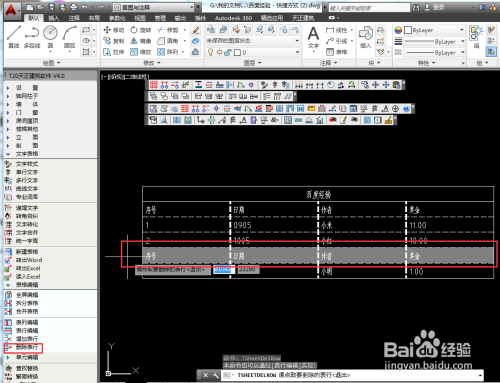 最后经由过程左侧【T20天正建筑软件V4.0】东西栏,依次选择【文字表格】》【表格编纂】》【删除表行】选项,对反复的表头进行删除即可。