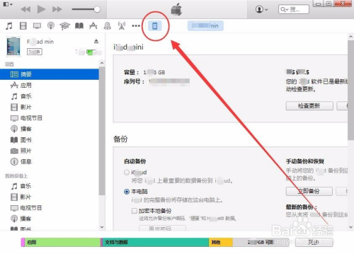 (六)单击设备按钮,进入本身的苹果设备,可以办理本身设备中的文件,进行下载等各项操作。