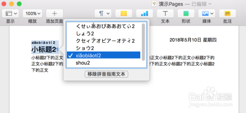 若是你想注释拼音,而且不需要对拼音做编纂,也可以利用Pages文稿的添加拼音指南文本功能。