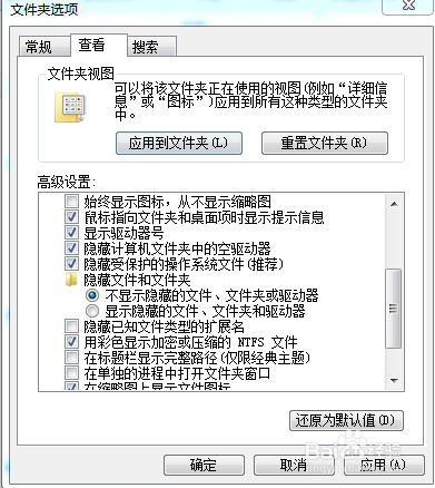 去失落对号之后点击应用,再点击确定退出文件夹选项。至此,就可以显示所有文件的扩展名了。