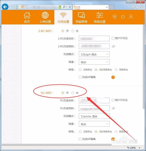 无线设置界面中,将5GWiFi功能打开。