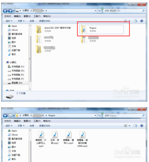 回到我们的U盘下看到会多了一个KuGou的文件夹,打开后看到下载好的歌曲。