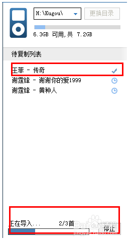 然后会看到我们当地存放的歌曲,选中想要下载的好的歌曲后,右侧会显示选中的歌曲,下方点击就 起头复制 就可以了。