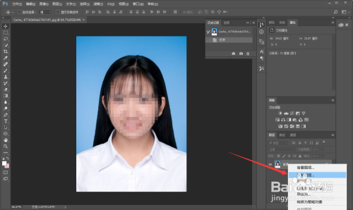 打开素材后,选择素材的图层然后右击,选择【复制图层】或者按快捷键CTRL+J,复制一个素材图层。这是每次作图前都应该做的,目标是为了防止后面呈现错误是可以有挽回的余地。