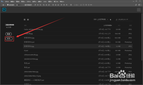 首先我们打开ps软件,然后点击【打开】或者按快捷键CTRL+O键。