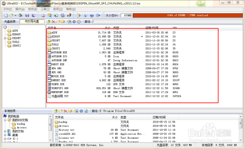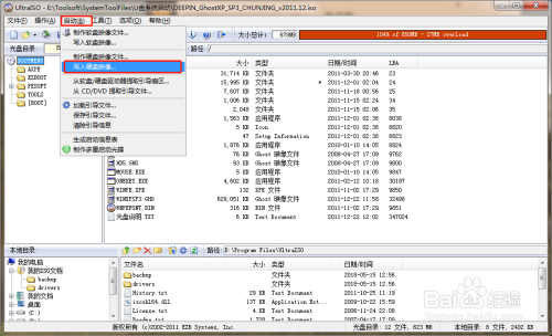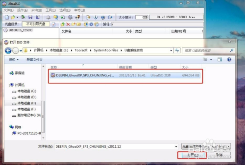 文件---打开-打开DEEPIN_GhostXP_SP3_CHUNJING_v2011.12的ISO镜像文件如下图: