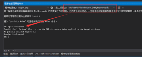 在NuGet完当作包还原操作后,运行Update-Database号令,获得“Running Seed Method”后完当作ABP初始化设置装备摆设,如下图所示: