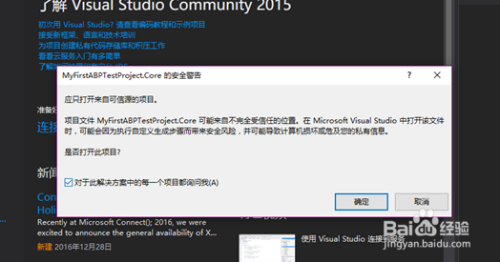开启项目后会提醒如下警告,去失落复选框中的钩后单机确定,如下图所示: