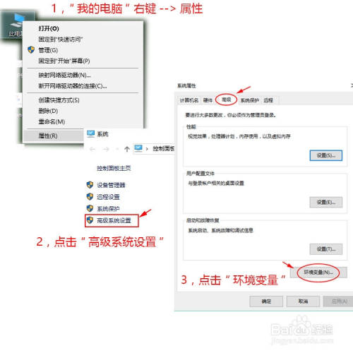 “我的电脑”右键 --> 弹出系统对话框 点击“高级系统设置”--> 弹出系统属性对话框 点击 “情况变量”,如下图所示: