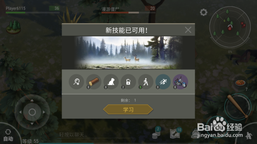 点击小树图标后会弹出技术框。点击进修按钮。